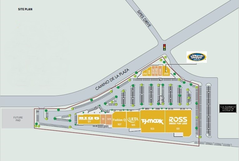 THE PLAZA AT THE BORDER(98,123평방피트)는 산 이시드로(미국)와 티후아나(멕시코) 국경을 따라 위치해 있으며, 세계에서 가장 분주한 국경 검문소에 인접하여 있어서 여러 나라의 관광객과 여행자를 끌어 모으고 있습니다. San Ysidro는 가족과 함께 쇼핑하고 먹고 즐길수 있는 좋은 장소입니다. 샌디에고에서 쇼핑과 식사를 위해 미국에 오는 멕시코 시민들은 매일 7 백만 달러를 소비합니다. THE PLAZA AT THE BORDER에는 ROSS, TJ Maxx, ULTA Beauty 및 Five Below 등이 입점하고 있습니다.